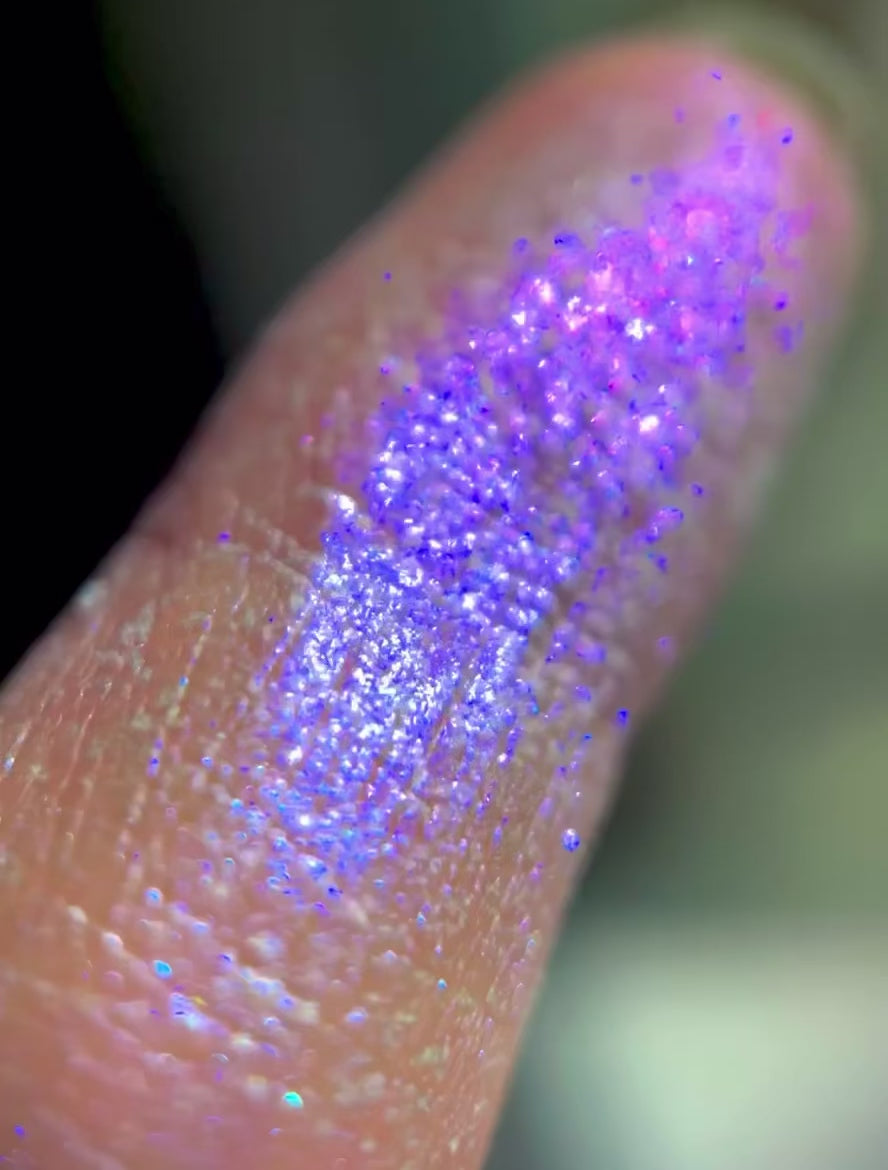A Widow's Veil: An iridescent lavender duo chrome blush that glows with a radiant aqua blue shift.